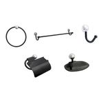 Kit Acessórios Banheiro Mônaco 5 Peças Preto Cromado - Organização e Estilo para seu Banheiro