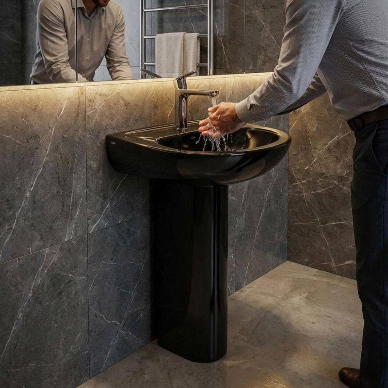 Lavatório para Coluna Saveiro Preto 470x395 - Louça sanitária de qualidade superior